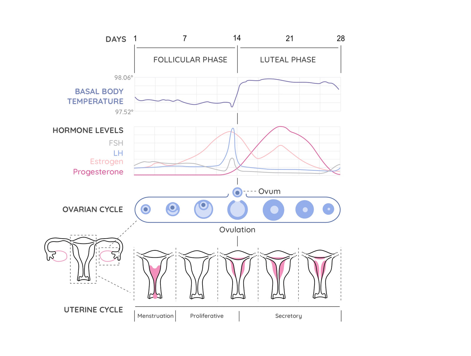 The menstrual cycle is the process that prepares women's uterus for pregnancy every month. It is a cycle through which the female ovules are developed, and different physical and psychological changes occur. The result of the cycle can be pregnancy or menstruation. If the ovum is fertilized, pregnancy happens; if not, menstruation occurs. The cycle begins with the first day of menstruation and ends one day before the next menstruation. It consists of four phases: menstruation, follicular phase, ovulation, and luteal phase.